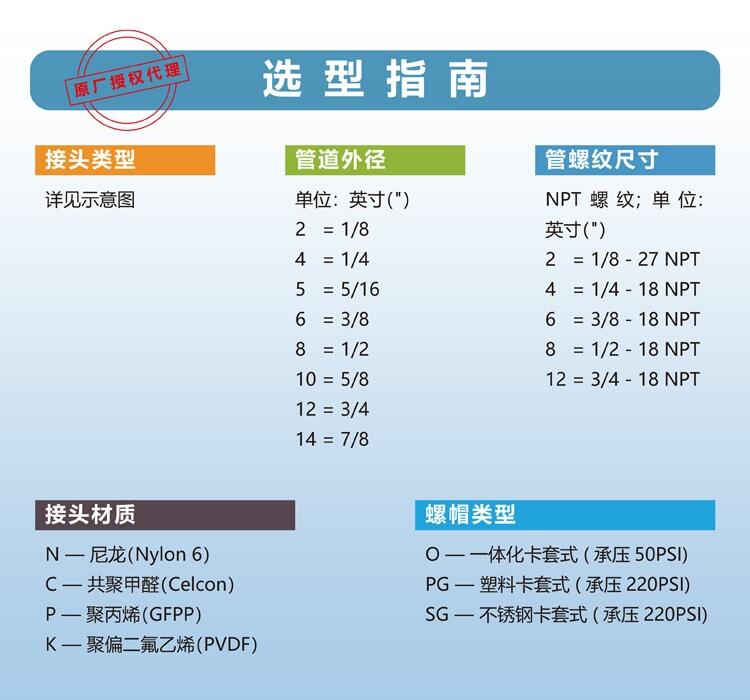 如需定制公制尺寸、BSPT螺纹和黑色卡套式接头,请联系公司销售。