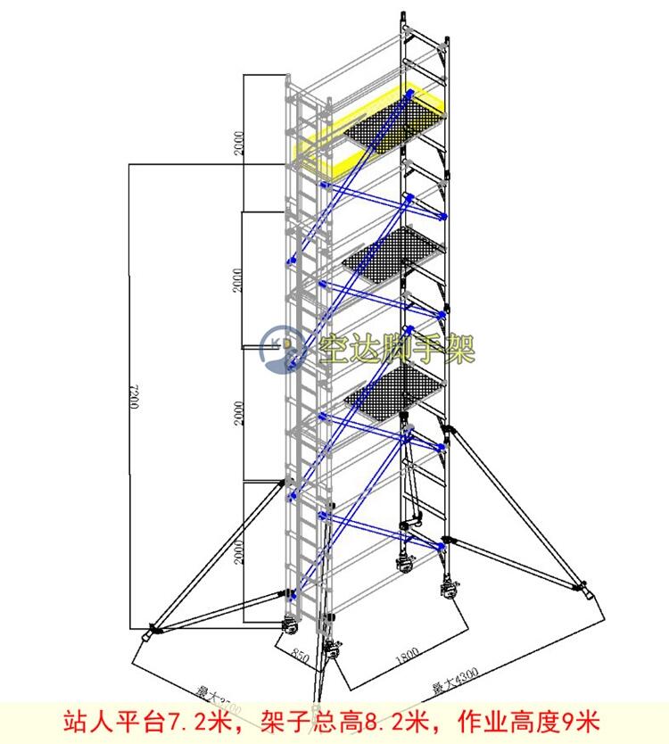 移动铝合金脚手架无论在安全还是性能都远远优于传统钢制脚手架,因此受到大量施工单位的认可。在建筑行业中,不论大型楼宇的建设还是小型物业路灯的维修随处都可以见到其身影。