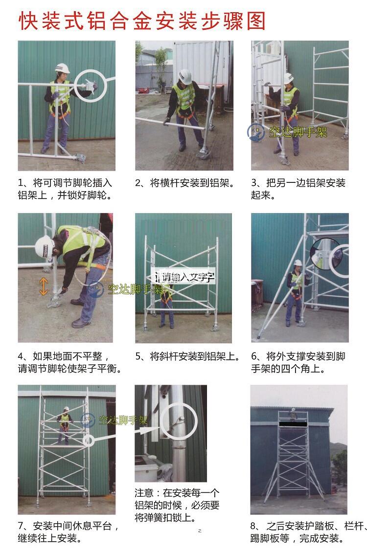 安装方式科学。传统脚手架只有斜向拉杆,而且斜向拉杆,采用交叉式,层于层之间的连接断开,导致层于层之间结构松散,不牢固。铝合金脚手架采用斜向和横向搭配拉杆,斜向拉杆连接是连续的,并且是前后两个方向都需要搭建,双方向逆向受力,使得脚手架整体受力好,结构牢固稳定。