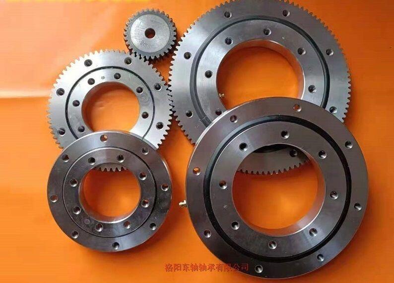 洛阳东轴轴承有限公司能根据您的要求问您设计根据客户使用场合的不同可以分别配置带有内齿或外齿的齿圈,结构紧凑、重量轻、安装使用方便,钢球与圆弧滚道四点接触,能同时承受轴向力、径向力和倾翻力矩,可适用于要求重量轻便,承载不大的机械设备、车辆、工程机械回转部位等均可选用。