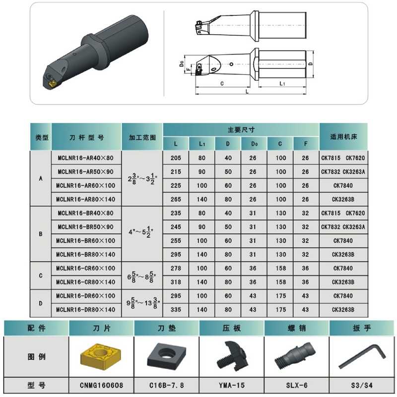 石油管螺纹疏刀刀具镗孔刀杆MCLNR16-AR60×100
