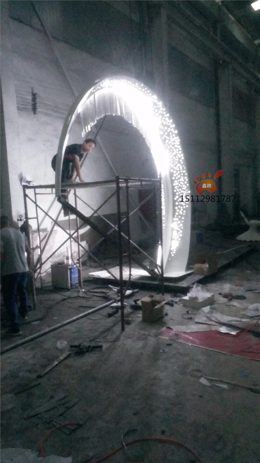 发光月亮不锈钢雕塑、园林艺术雕塑夜间效果印象满分