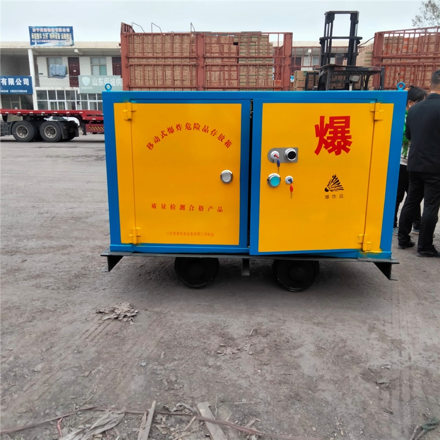 有轨井下z药运输车也可称为矿车z药箱,轨道式B破器材箱等,是一款具有多家检测机构出具报告,专用于向井下运输Z药,L管等B破器材的运输车,附带有煤安证或者矿安证,分别适用于煤矿和非煤矿山企业,同时还带有名称为“矿用可移动式爆炸危险品存放箱”的g安检测报告,防爆检测报告以及防静电垫检测报告。产品可根据各矿山轨距,存放量,罐笼尺寸等一些因素进行定制,被全国多家矿山企业火工品安全运输带来了保障。