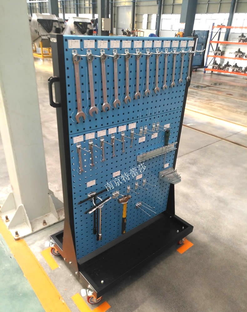 物料整理架是提供一种使用方便、空间的工位器具。 物料整理架是由方孔挂板、页挂板、背挂零件盒、棚板、挂钩和底座等组成,应用于车间的生产、装配、维修工位,也应用于仓库,存放多品种少量的小型物料和工具。物料整理架结合 背挂零件盒及多用途的挂钩配件,不但适合类型的物料整理,更适合小型物料工具、零件及异型物品的保管分类,充分有效的运用空间。根据不同的要求可分为移动型、型、连接型。 1.方孔挂板与挂钩配合使用,挂钩可任意变换孔位,定位快捷,稳固。手工具定位管理,节省找寻时间,方孔挂板(方孔为10x10mm,孔间距为28mm)也可加装于工作台。 2.页挂板适用于攀挂零件盒及页挂钩。吊挂容易,小型物料、零件易于分类、储存管理。安装方便,与方孔挂板可配合使用。页挂板也可加装于工作台.沧州移动物料架_宿迁移动式物料整理架-南京特蕾莎