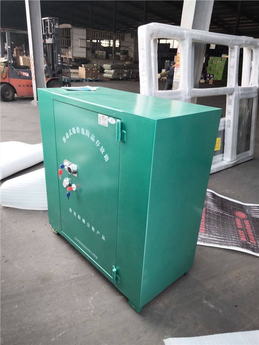 民爆物品临时存放库,材质要求为钢制结构,坚固耐用,抗压防爆,钢板厚度为6-8mm,为整体库房结构,相对比可拆装式库房,防水性高,经久不易变形,库房内部是绝缘作用的木板和一层防静电阻燃毡垫,存放库材质具有防爆,防静电的特质,在各种爆破工程用于储存危险物品提供了很大的安全保障,附带有年检内最新日期的公安检测报告,防静电检测报告以及防爆检测报告,并配备有生产合格证。