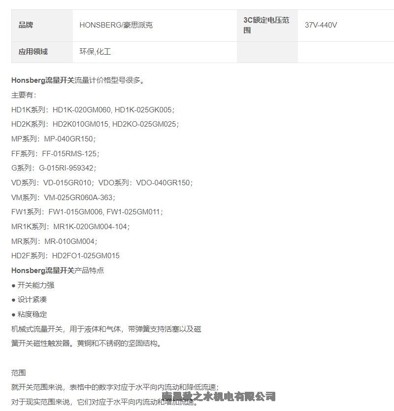德国豪斯派克HONSBERG流量开关HD2K-O01020GM025