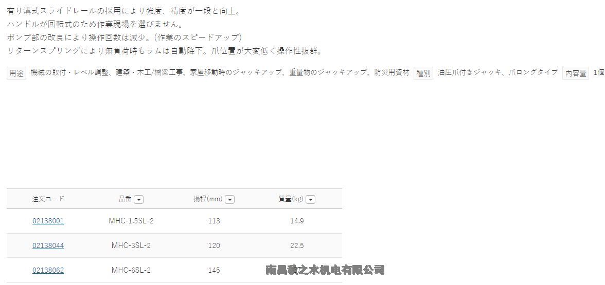 日本Masadaマサダ製作所千斤顶爪付オイルジャッキMHC-1.5SL-2