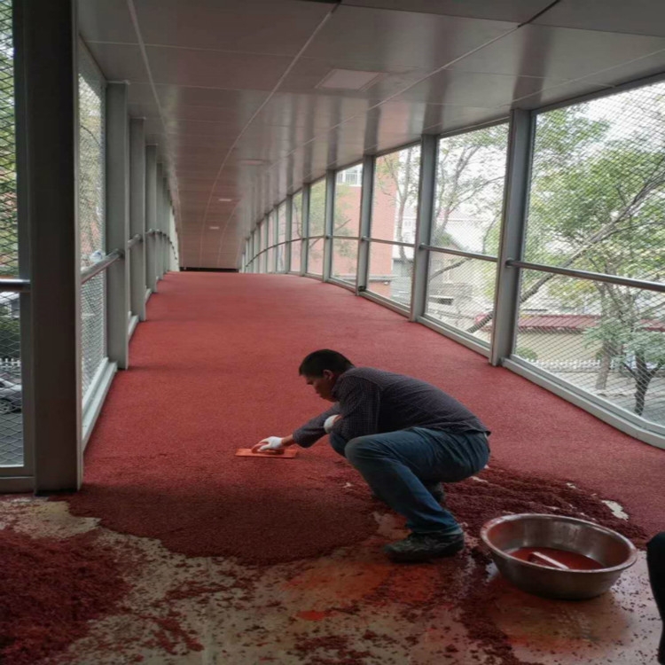 5、施工前,必须确保路面是干燥的,潮湿的路面可以用热气机吹干路面,特别是冬天环境,必须采取措施加热路表面,并加速树脂凝结;
