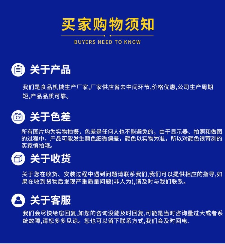 公司自创建以来,一直奉行‘和谐发展,诚信共赢’的经营理念,视产品质量为企业生命,力求让每件设备都精益求精,为广大用户提供完善的售后服务,我们愿以优异的产品.良好的服务.真诚的态度来对待食品机械未来。公司全体员工真诚欢迎各界朋友前来参观指导.洽谈合作。