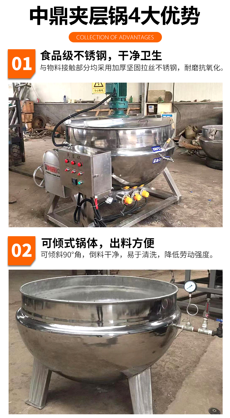 电加热夹层锅炒酱锅蜜枣馅料熬制锅中鼎机械