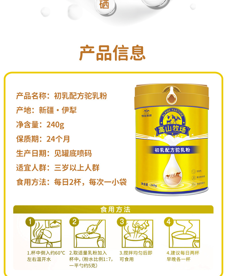 产品名称 | 初乳配方驼乳粉 | ||