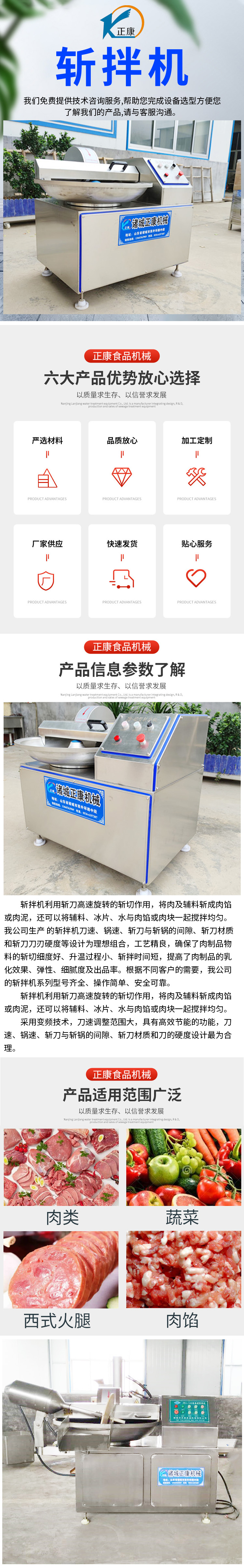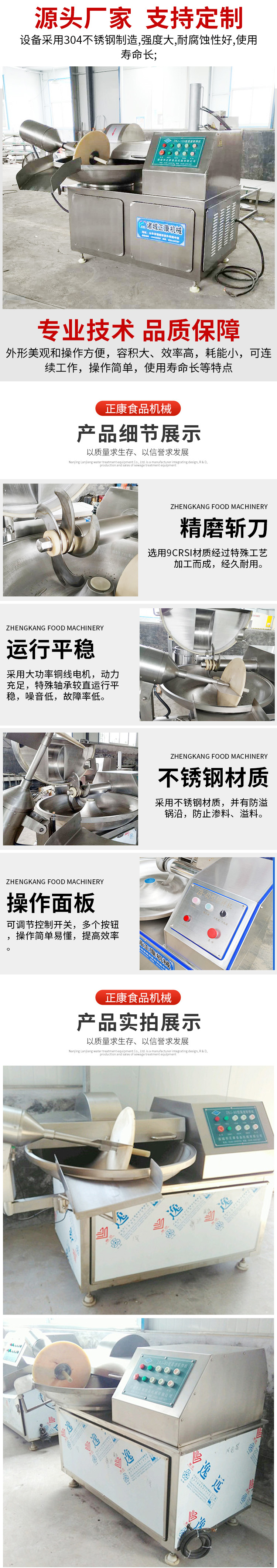 斩拌机肉类蔬菜切碎搅拌机大中小型变频斩拌设备正康源头厂家