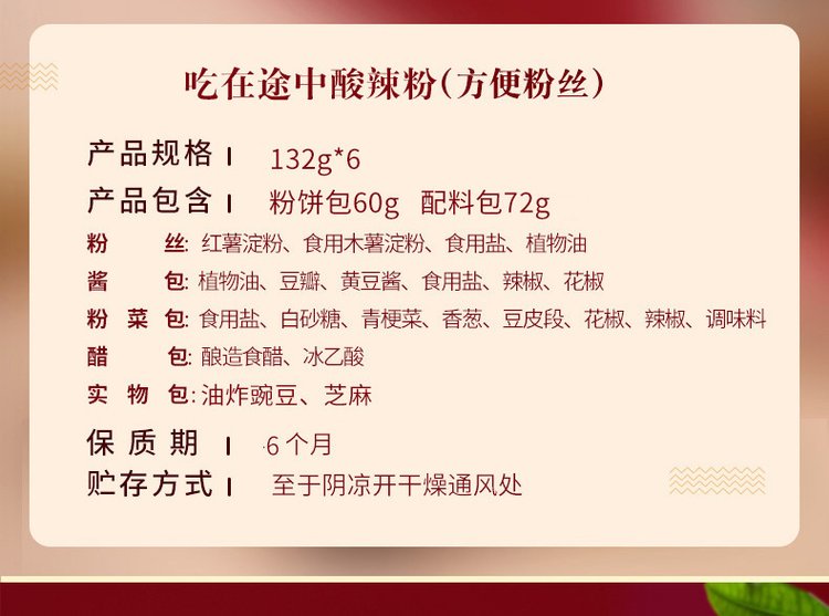 产品配料 | 详见包装(一般包含粉丝、调味料等) | ||