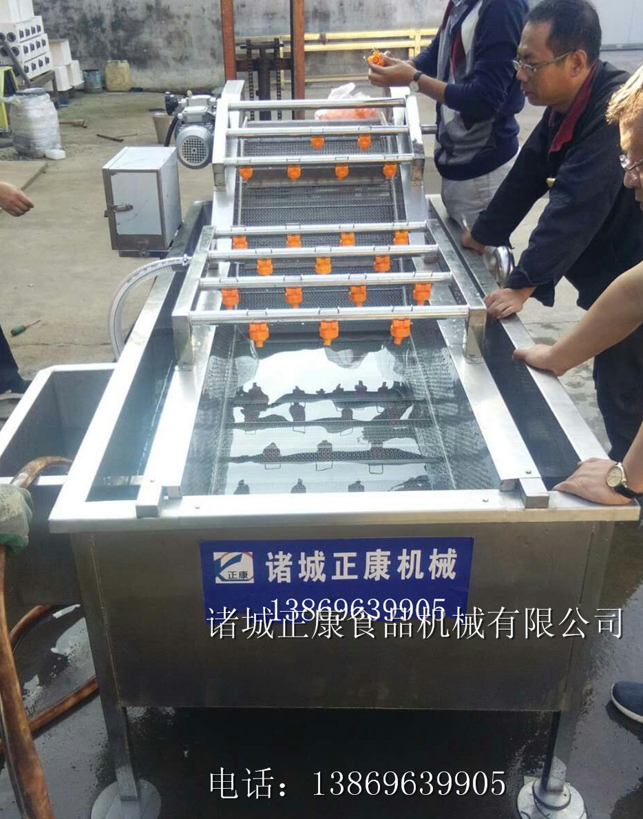 正康机械设备采用汽泡水浴清洗.本清洗机采用汽泡清洗,适用于叶类蔬菜的清洗,可根据产品的质量要求来定做。正康设备除电机外均采用不锈钢材料制作,完全符合出口食品卫生要求。设备中设有气泡发生装置,使物料呈翻滚状态,去除产品表面农残功效,同时可加入适量的药剂,进行毒固色,漂浮物可以从溢流槽溢出,沉淀物从排污口排出,以达到清洗的目的。