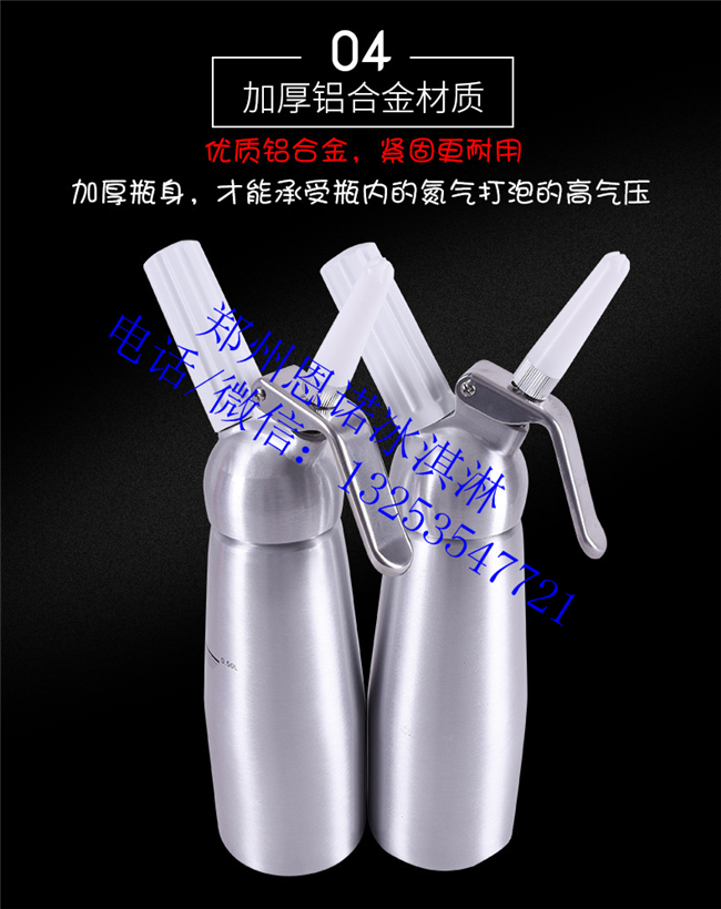 液氮冰淇淋理论知识 1:液氮是什么? 液氮:液态的氮气。是惰性的,无色,无臭,无腐蚀性,不可燃,温度极低。氮构成了大气的大部分(体积比78.03%,重量比75.5%)。氮是不活泼的,不支持燃烧。 在常压下,液氮温度为-196℃;1立方米的液氮可以膨胀至696立方米 21°C的纯气态氮。液氮是无色、无味,在高压下低温的液体和气体。 液氮(常写为LN2),是氮气在低温下形成的液体形态。氮的沸点为-196°C,在正常大气压下温度如果在这以下就会形成液氮;如果加压,可以在更高的温度下得到液氮。. 在工业中,液态氮是由空气分馏而得。先将空气净化后,在加压、冷却的环境下液化,借由空气中各组分之沸点不同加以分离。氦气最先泄出(且未被液化),接着就是占空气中78.09%的氮气,再来是占20.95%的氧气, 中文名 液氮 英文名 Liquid nitrogen 化学式N2 沸 点 : -196.56℃ 水溶性:无色透明液体 应 用快速冷冻、冷冻麻醉 食品冷冻 2液氮冰淇淋用那种液氮? 我们做液氮冰淇淋用的是医用液氮(纯度是99.99%)完全达到食品级的 可以冷冻食物 ,应用到冷饮 咖啡 分子鸡尾酒 分子冰淇淋上 3怎么购买液氮? 我们做液氮冰淇淋用的是常压液氮罐 ,不是密封。液氮是液体 所以不能快递与物流运输 必须在本地购买液氮 4:做吃起来冒烟的魔法液氮冰淇淋需要那些设备呢? 必备设备: 液氮罐 液氮壶 液氮虹吸瓶 液氮保温盆 其他配套工具 : 电子称 量杯 液氮冰淇淋勺 液氮冰淇淋漏勺 虹吸瓶专用子弹 防护工具: 液氮防护手套 液氮防护眼镜 冒烟冰淇淋机厂家直销-郑州恩诺商贸公司售多种冰淇淋机价格咨询电话/微信:13253547721(QQ:309877646)