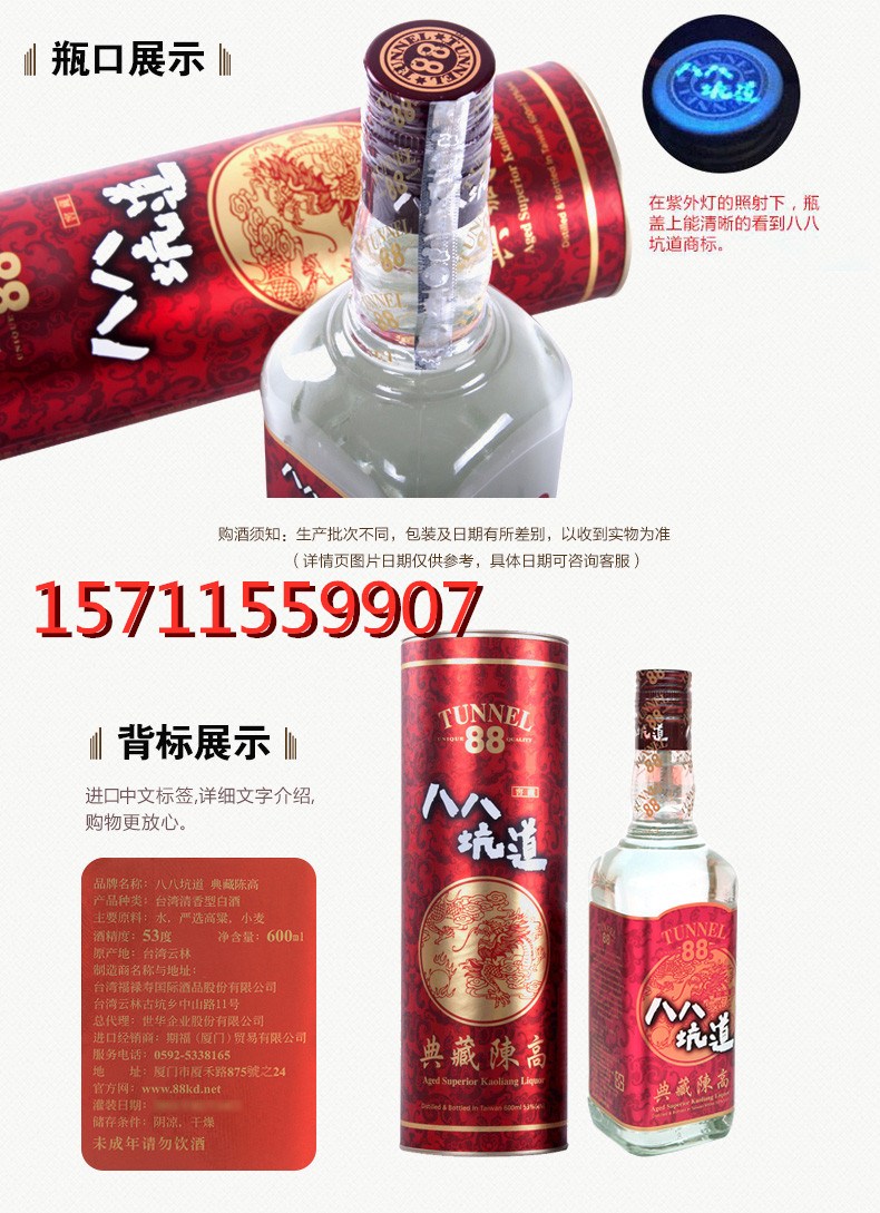 台湾八八坑道高粱酒53度典藏陈高600毫升红色圆桶纯粮食白酒沈阳    53度典藏八八坑道陈高高粱酒600毫升红色圆桶   台湾八八坑道53度典藏陈高酒批发
