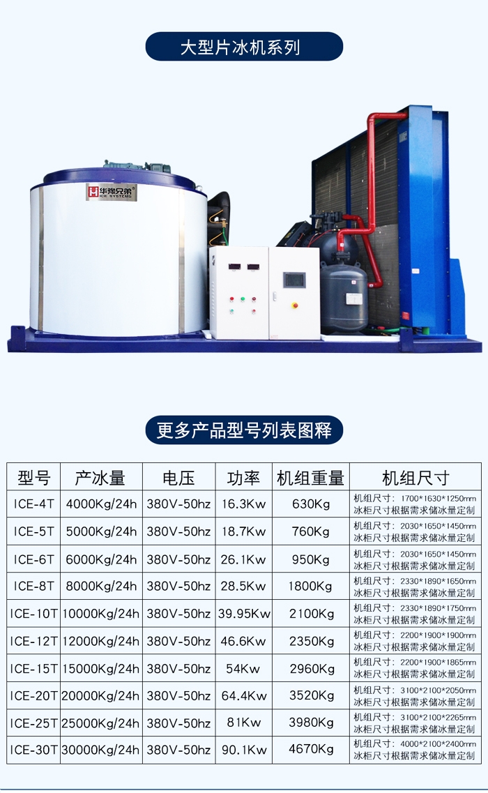 华豫兄弟ICE-20T片冰机参数: