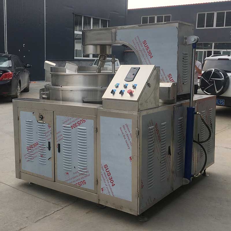 本产品锅体为一次冲压成型的球形不锈钢锅体,采用燃气加热形式,外保温层采用硅酸铝材质,耐火耐高温,保证加热能量不损耗;搅拌方式采用特殊的倾斜式传动,使用的行星式搅拌器与锅体充分接触,多个搅拌齿,实现传动公转与自转的不整数传动比,使锅内无搅拌死角。使用先进的传动与密封结构,使传动部分与锅内洁净、卫生。采用变频调速动力,运行更平稳。本机采用全自动液压翻锅运料,降低成本,是性能优良的食品加工设备。