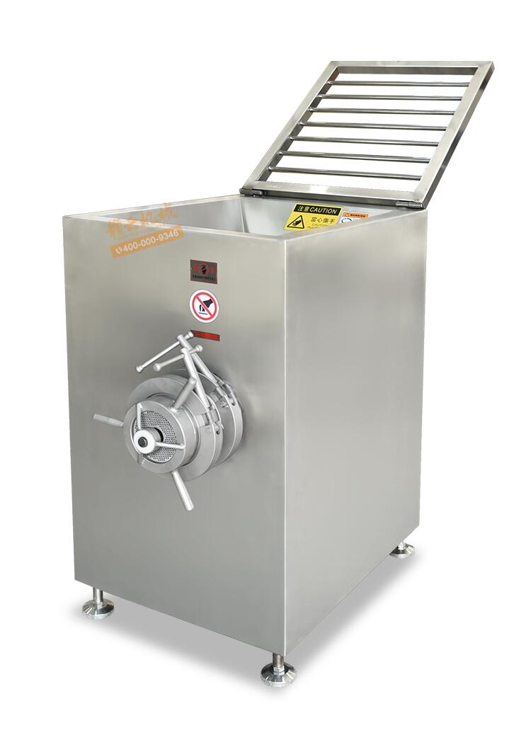 冻肉绞肉机依靠螺杆将料斗箱中的原料肉推到预切板处,通过螺杆的旋转作用,使得绞刀与孔板产生相对运动,从而将原料肉切成颗粒形状,以消除原料肉种类、软硬、纤维粗细不同的缺陷,确保了肉馅的均匀性.冻肉肉机主体全部采用不锈钢制作,设备结构合理、造型美观、机械性能稳定可靠、清洁卫生、噪音小。该机可以绞冻肉、带骨鸡架、冻鱼。用户可根据工艺要求选配不同规格的孔板,加工出理想的肉馅,以满足不同肉制品的加工需要,是替代进口同类产品的选择。