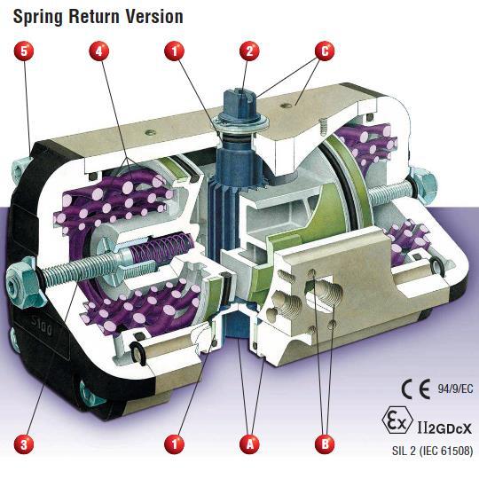 Automax执行器的主要功能是产生一个扭矩输出,以转动阀门或其他旋转设备。因此,它不被视为一个压力容器或机器。这些尺寸的气动执行器不受PED要求的制约。