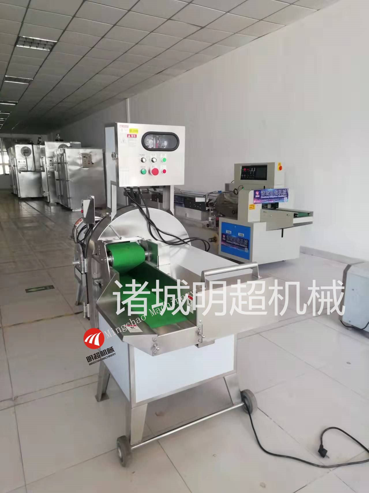 叶菜类-可切长条状葱、大蒜、韮黄、芹菜、高丽菜、大白菜等切段,输送带与切刀的转速采用变频器控制可以调切所切割的蔬菜长短。同时机器自带三种刀具,可以切丁、块丝状物料,产量大,节省时间,304不锈钢材质。