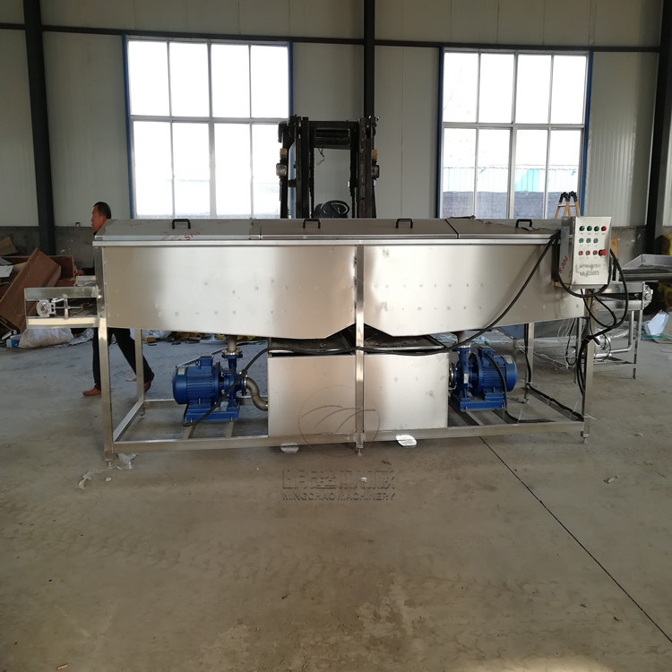 本机输送部分采用su304不锈钢网带,运行平稳、使用寿命长等特点,否和食品卫生要求。具有清洁净高、节能、节水、设备稳定可靠等特点。操作简单,维修方便、方便连线。(可根据客户要求附带臭氧杀菌),除轴承、电机等标准件外,均采用304不锈钢材质,符合国家对食品卫生的需求,该机采用气泡发生装置,清洗过程不损伤表皮,清洗量大,可配套流水线操作,该机运行平稳,使用寿命长,操作简单,维修方便。该机结构紧凑,自动化程度高,可根据不同的清洗物料和客户的需求定制设备