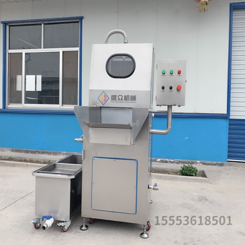 2.为使注射机和小肉块更加分离彻底,该设备设计了四层不同的过滤功能,能及时把小肉块排除注射液以外,有效地保证了注射针孔不被堵塞,传动链条可拆卸,清洗方便,针头拆装容易,便于更换。