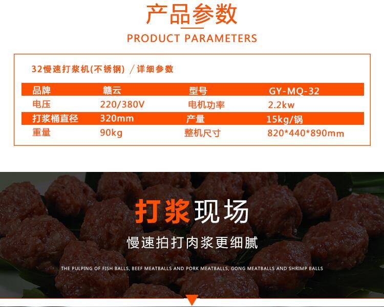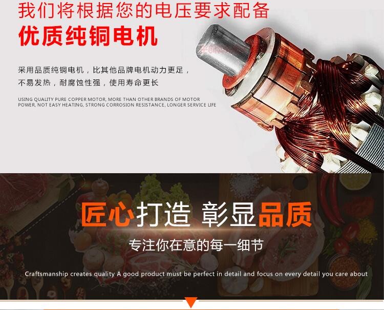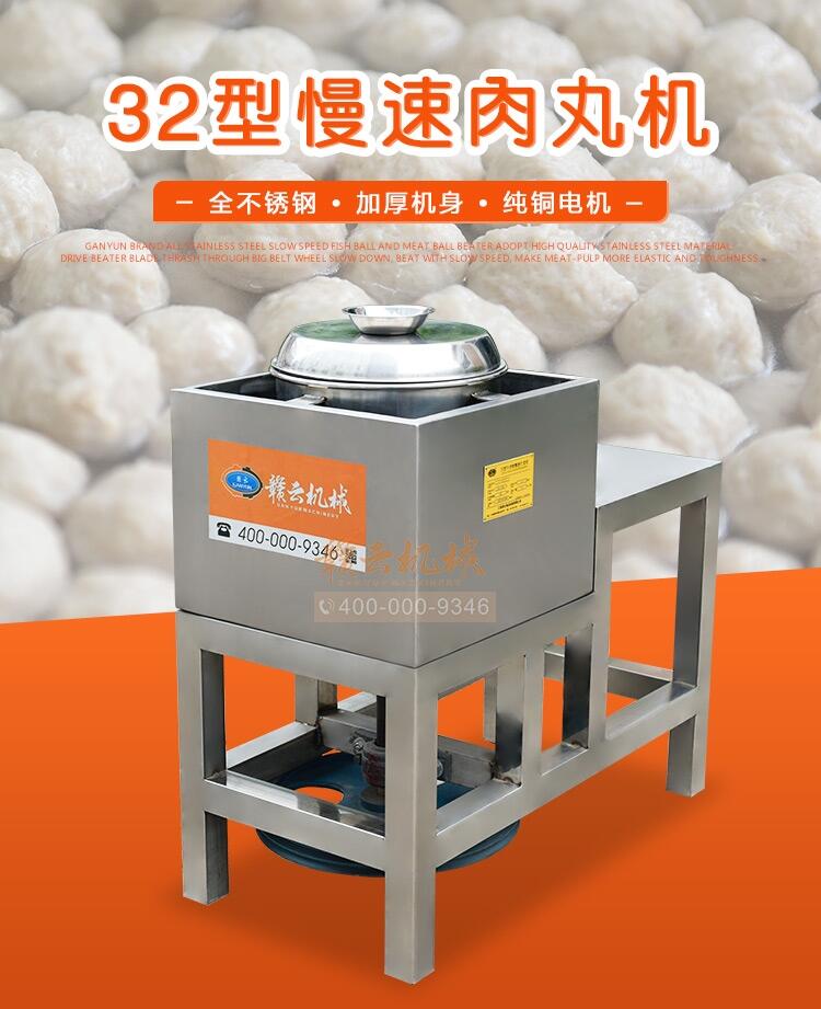 我厂出厂的这款普通内外桶加冰的慢速搅拌机,有32型号,36型号,和42型号。采用的是钝刀搅拌刀,配4P转速电机,刀片实际转速有300转左右,慢速拍打鱼浆,牛肉浆等。内外桶必须要加冰保证肉浆的鲜度。不然容易升温发热。