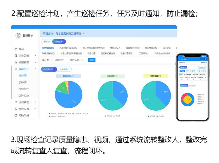 安全生产检查系统专注帮助企业安全检查流程更合规、更高效,充分利用排查数据管理企业生产安全,将业务流程从手动转变为数字化、业务处理移动化、?隐患管理规范化、信息传递即时化、过程记录完整化、?统计分析智能化。