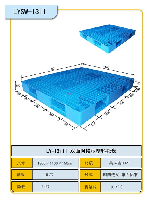 1311双面网格:1300*1100*150mm 动载:1.6T 静载:6T 货载:1T