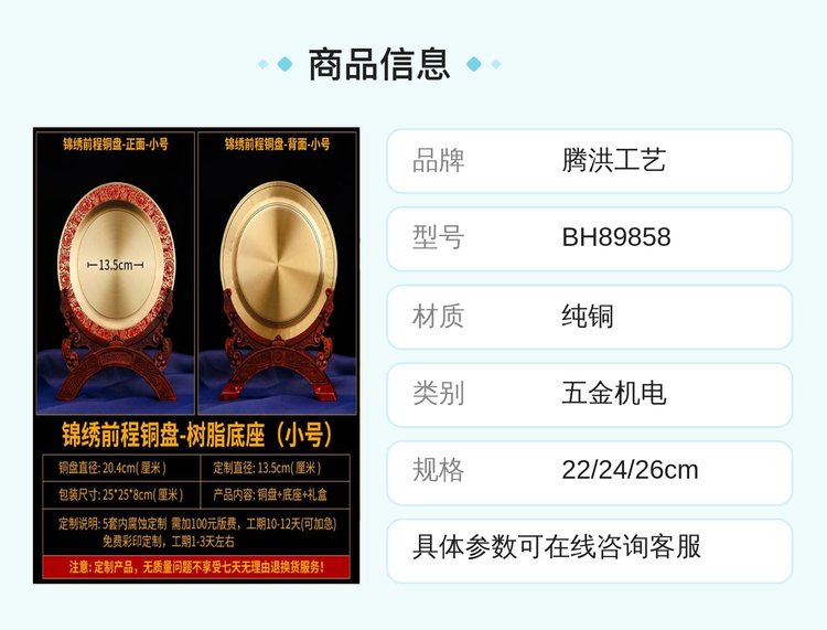 退换货政策 | 定制产品,无质量问题不享受七天无理由退换货服务 | ||