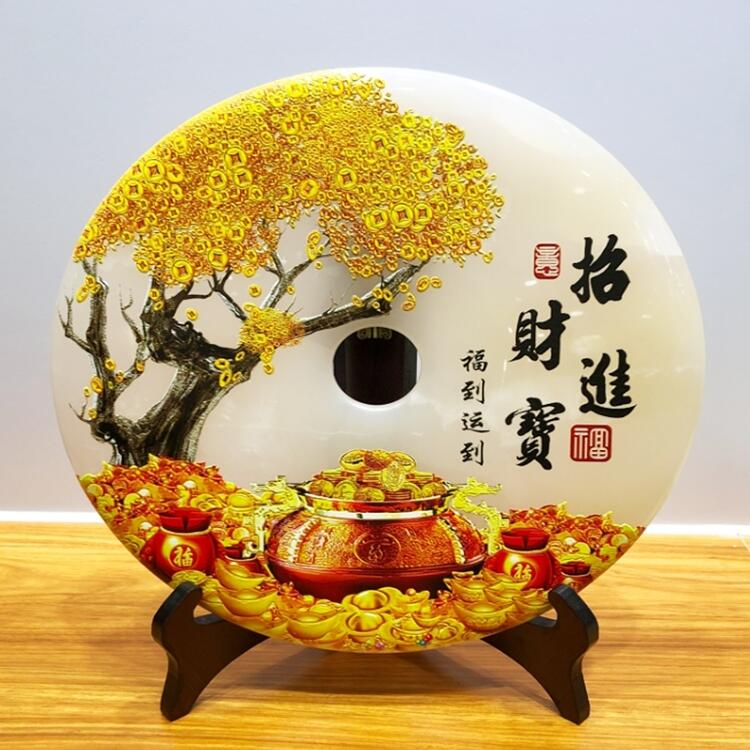 玉石平安扣摆件 厚德载物装饰品摆件