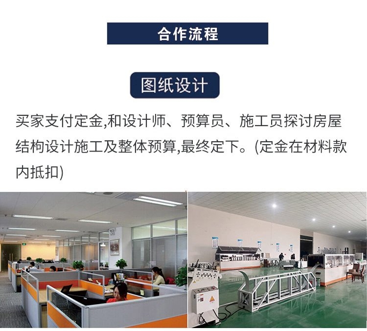 河南蓝之港轻钢别墅生产厂区位于河南省郑州市中牟县姚家工业园,总占地面积约80000平方米,斥资设立智能化冷弯薄壁型钢房屋生产线、集成墙板生产线,,C/Z型钢生产线、铝塑门窗生产线、装配式建筑全数控生产线等,通过精湛的技术研发与软件应用(BIM技术、Tekla structures软件、V***ex BD软件),年产钢结构达5万吨,3D轻钢房屋达40万平方米。其房屋打造的实用的功能就是房屋满足9度抗震设防要求,以及可以抵御13级强台风,而且可以完全使用工厂化生产、一体化成型安装的建材,代替木头、红砖、混凝土等材料的环保节能型住宅。