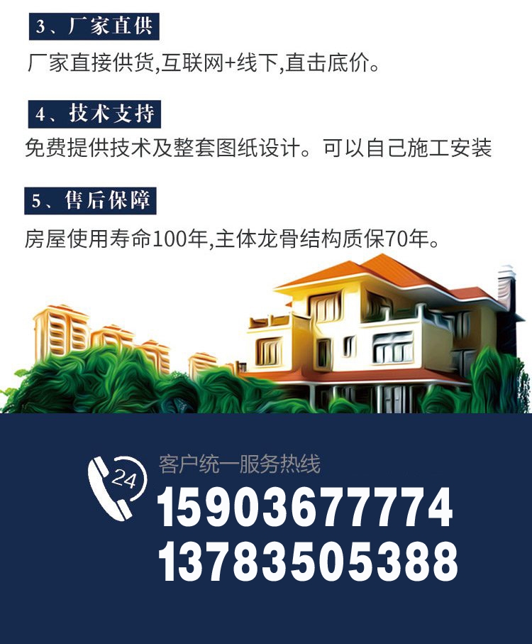 蓝之港集团积极响应相关政策,秉承“科技创新、安全环保、集成舒适”的经营理念,推广具有自主知识产权的节能环保型装配式建筑。并计划与包括城市学院科研中心在内的多家科研单位合作,研发各种新型建筑,新型材料,努力实现广大农村乡镇和城市郊区的房屋安全与品质,并且改变传统房屋资源浪费,环境污染的情况,为打造美丽乡村,美丽中国贡献力量。轻钢别墅的全部轻钢结构构件采用美国镀锌铝G550标准的镀锌钢龙骨建造,有效避免钢构件在使用过程中的锈蚀,大大提高了住宅的使用寿命。