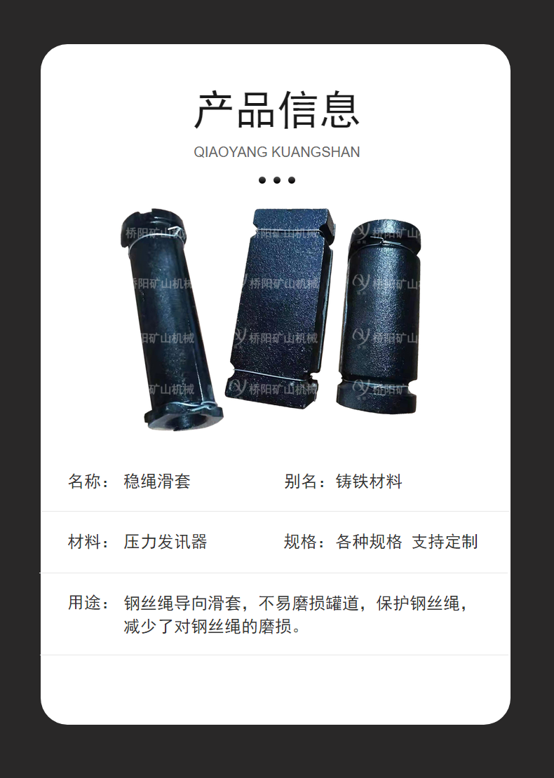 罐笼滑套,钢丝绳导向滑套。