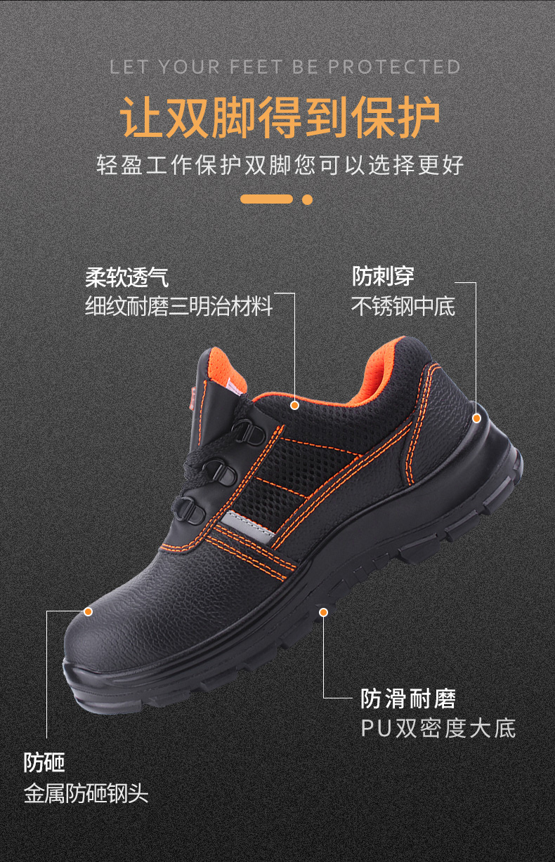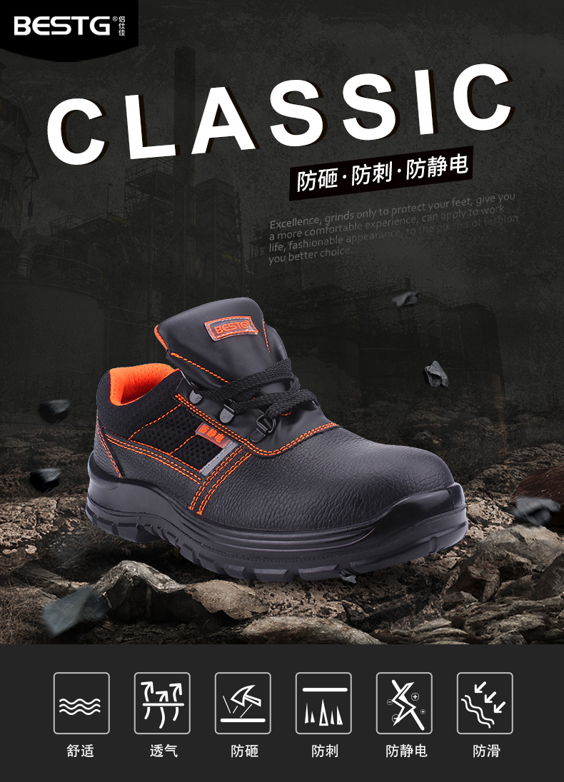 倍仕佳D3339劳保鞋男款钢头防砸防刺穿防静电透气款防滑