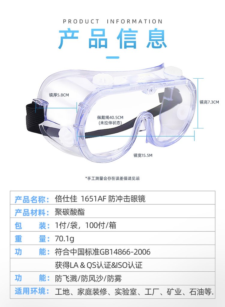 产品名称 | 倍仕佳1651AF防冲击眼镜 | ||