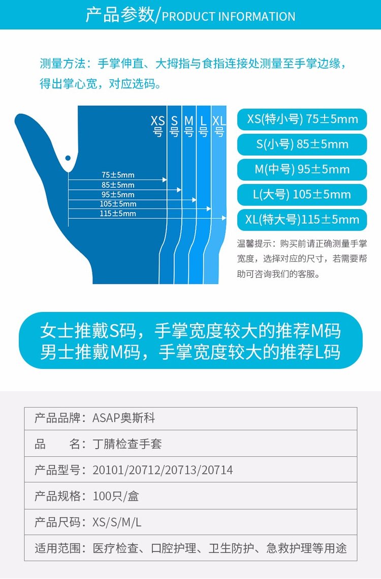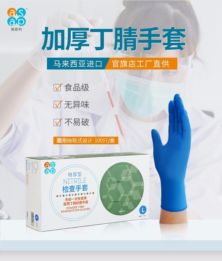 ASAP奥斯科一次性手套乳胶食品加厚耐用餐饮家务丁腈橡胶丁晴