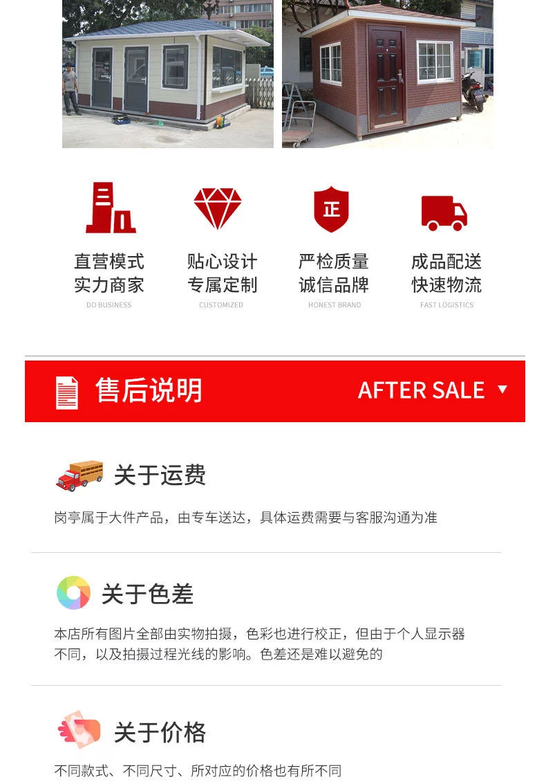 金属雕花板保安亭岗亭厂家移动成品门卫值班室设备房生产厂家