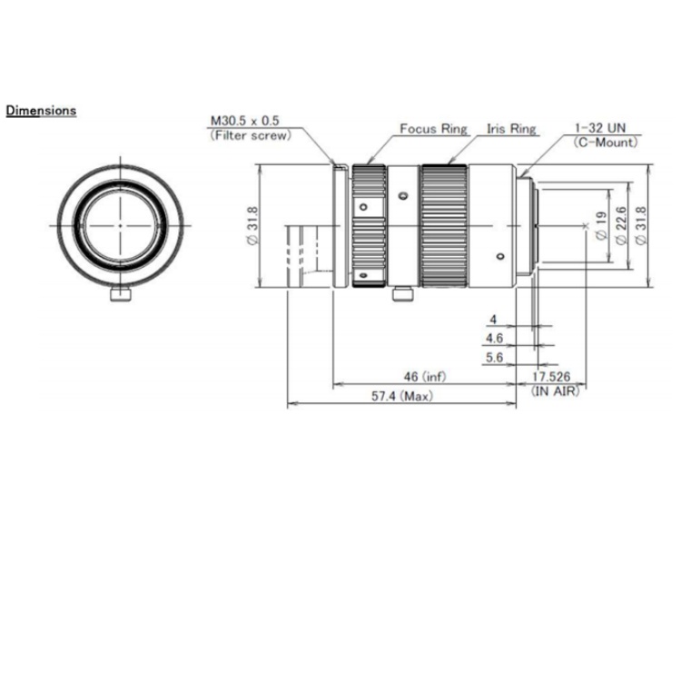 M5028-MPX 日本Computar 1600万像素2/3英寸50mm定焦光圈范围F2.8 ‐ F16.0低畸变C接口工业镜头 尺寸图Dimensions