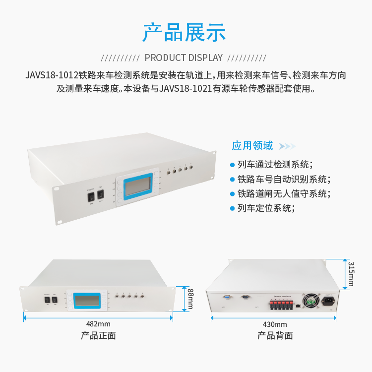 本设备用来检测火车是否到来;通过判断火车运行速度;测量火车运行速度。