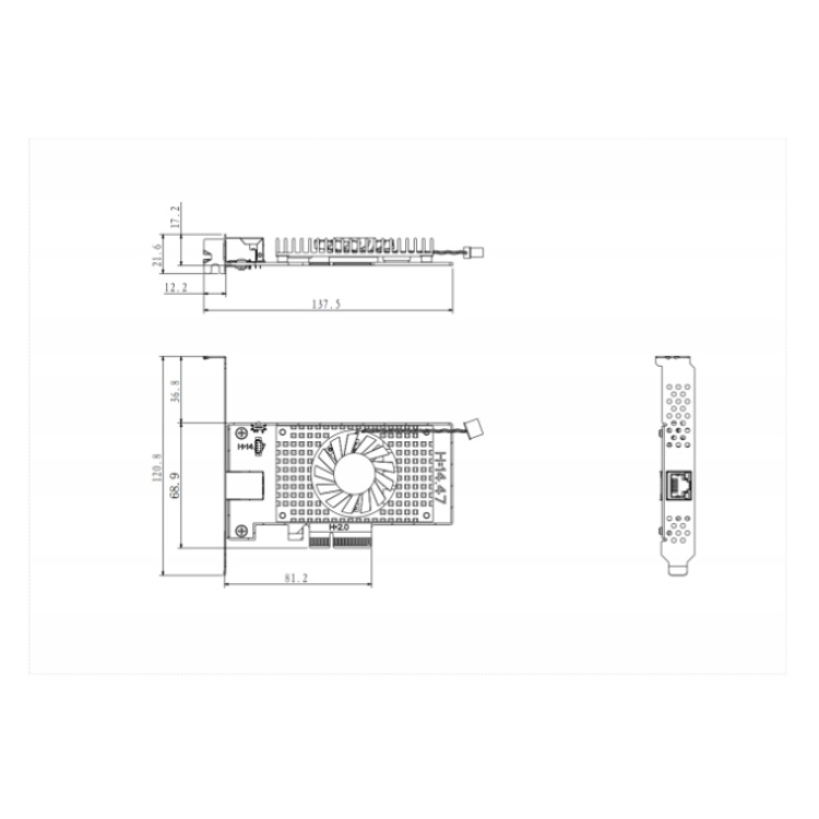 GT-7G10 杭州华睿科技1路万兆网口工业相机用PCIE供电数据采集卡 结构尺寸图(mm):