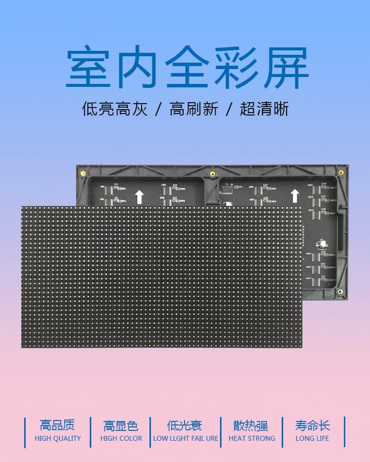 3.选材优质:采用进口发光材料,高品质IC芯片,无噪声大功率电源;整屏无风扇设计,无噪声、低功耗,可在0℃~55℃温度范围使用。