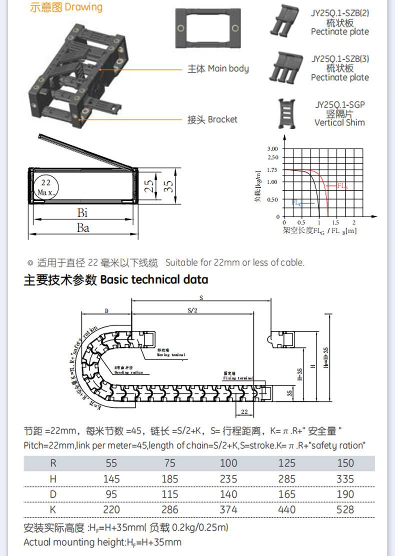 金福隆静音拖链25*57R75轻型降音减噪传动链