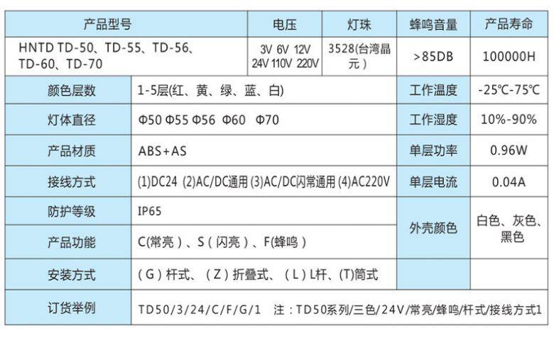 TD50红黄绿常亮带蜂鸣器24VHNTD三色多层可选