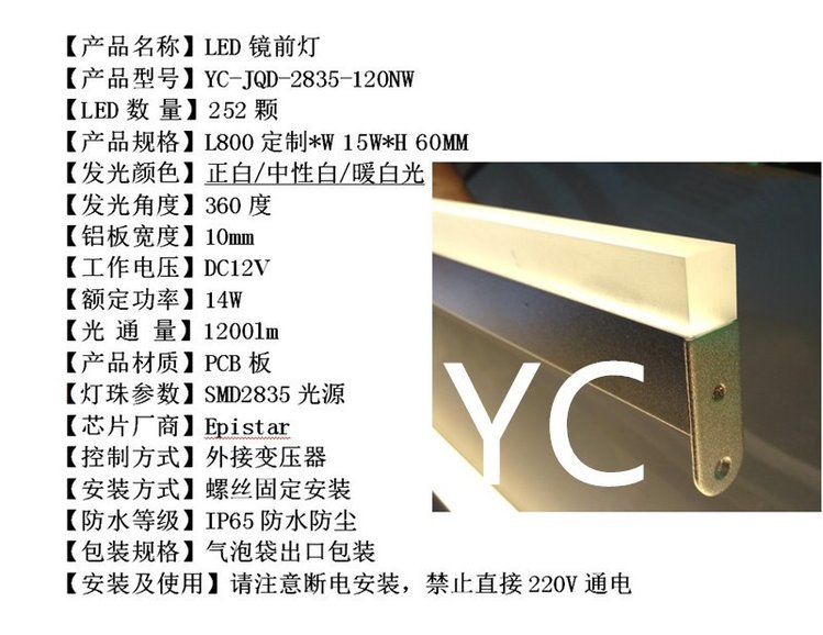 镜前灯产品参数展示