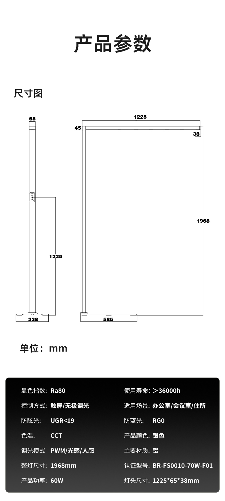 • 规格:分杆式70w(触摸调光)