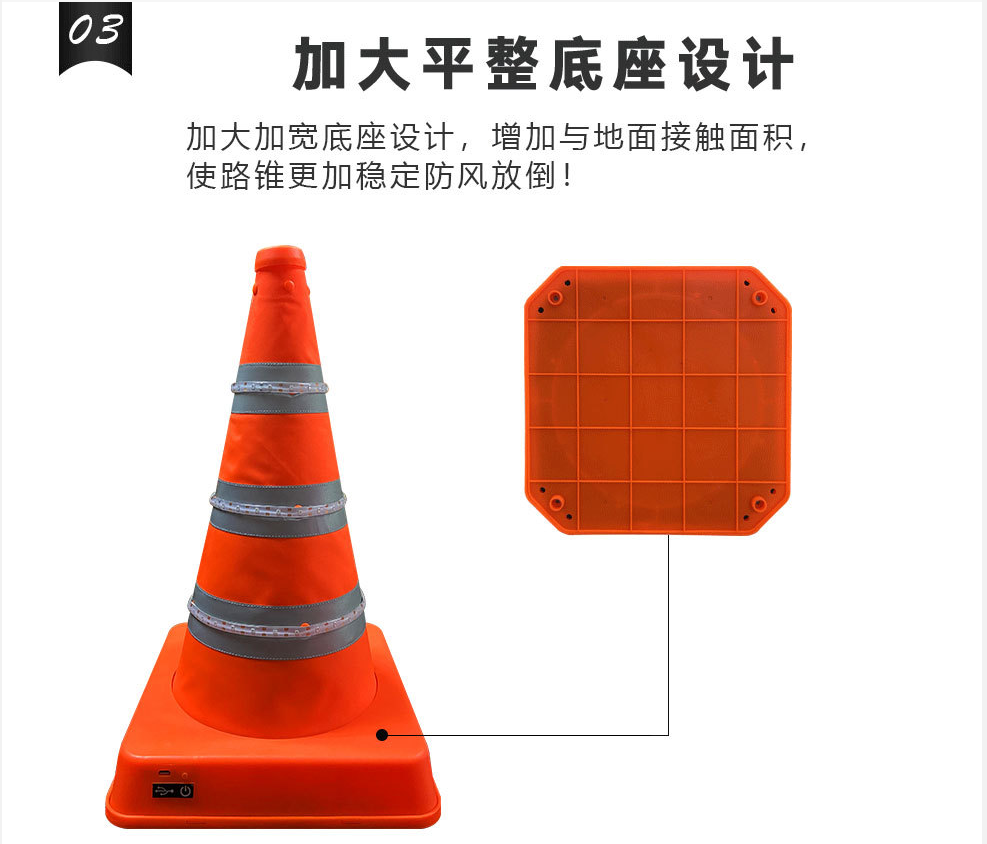 SZSW2760灯带路锥LED警示爆闪发光伸缩路锥USB充电车载便携路障