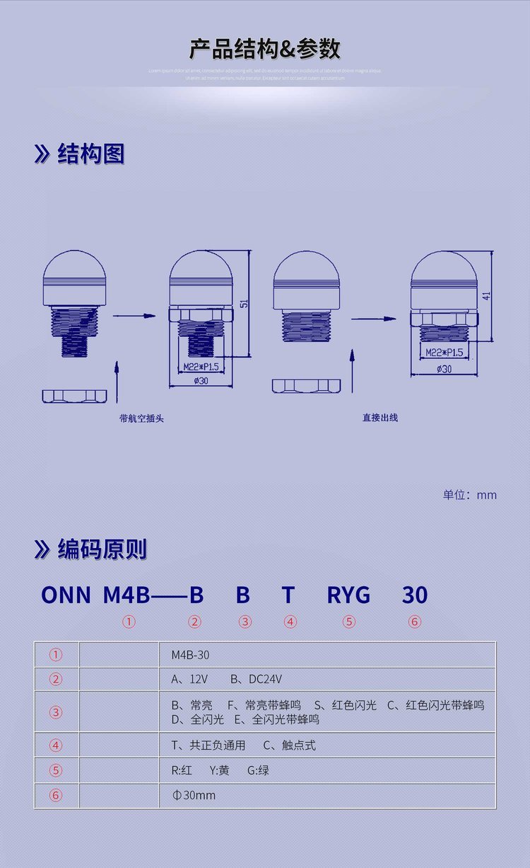 欧恩圆形三色报警灯M4B-30小型指示灯设备警示灯IP67高防护12/24V 品牌 | 欧恩 | ||