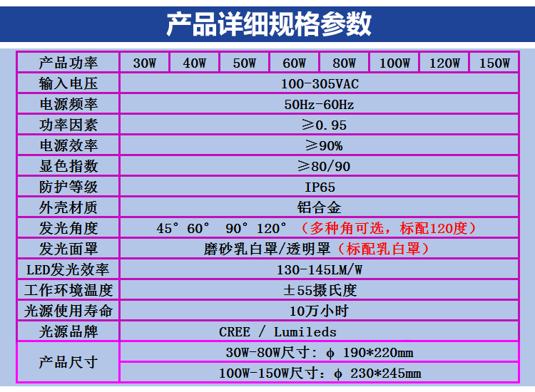 发光角度 | 25度/45度/60度/90度 | ||